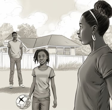 Le souvenir de ses parents apparait devant elle pour la décourager de rejoindre les garçons tandis qu’une footballeuse professionnelle l’incite à y aller.